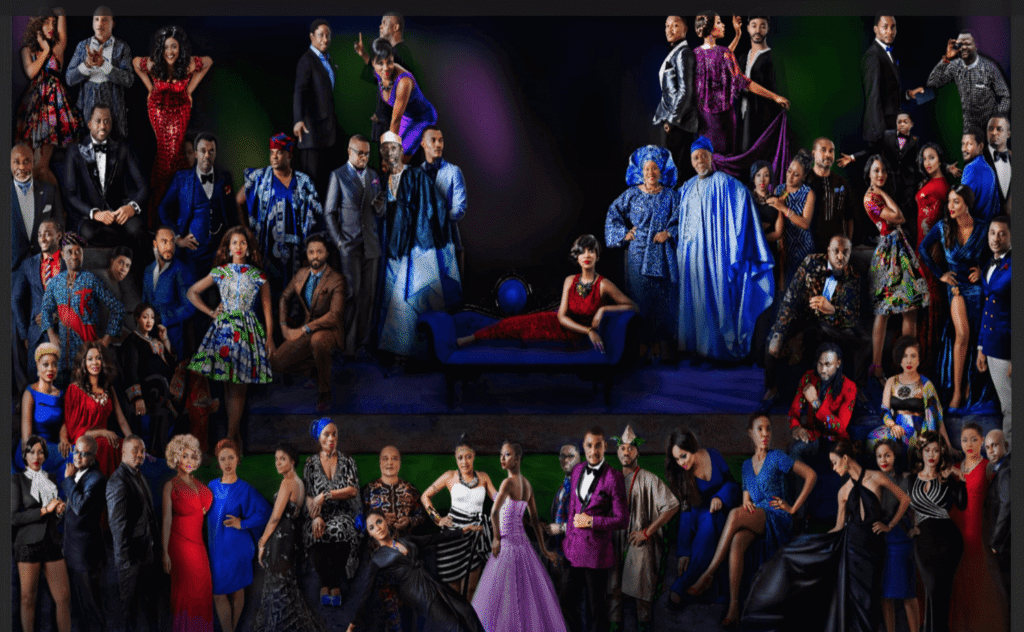 also created a grand group portrait of all 64 subjects, The School of Nollywood, inspired by Raphael’s The School of Athens, 1509. A